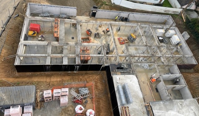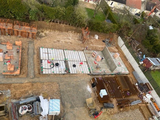 Pose du plancher en sous-sol et dalles bases en cours